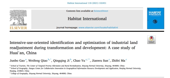 近日,我院高军波教授在国际城市研究领域权威期刊《Habitat International》在线发表了题为《Intensive-use-oriented identification and optimization of industrial land readjustment during transformation and development:A case study of Huai’an, China》的论文。根据国际期刊引证报告,《Habitat International》是城市研究类国际权威学术期刊,属SSCI一区期刊(JCR分区),近5年平均影响因子为5.369,此为永利集团官网首次在该期刊发文。