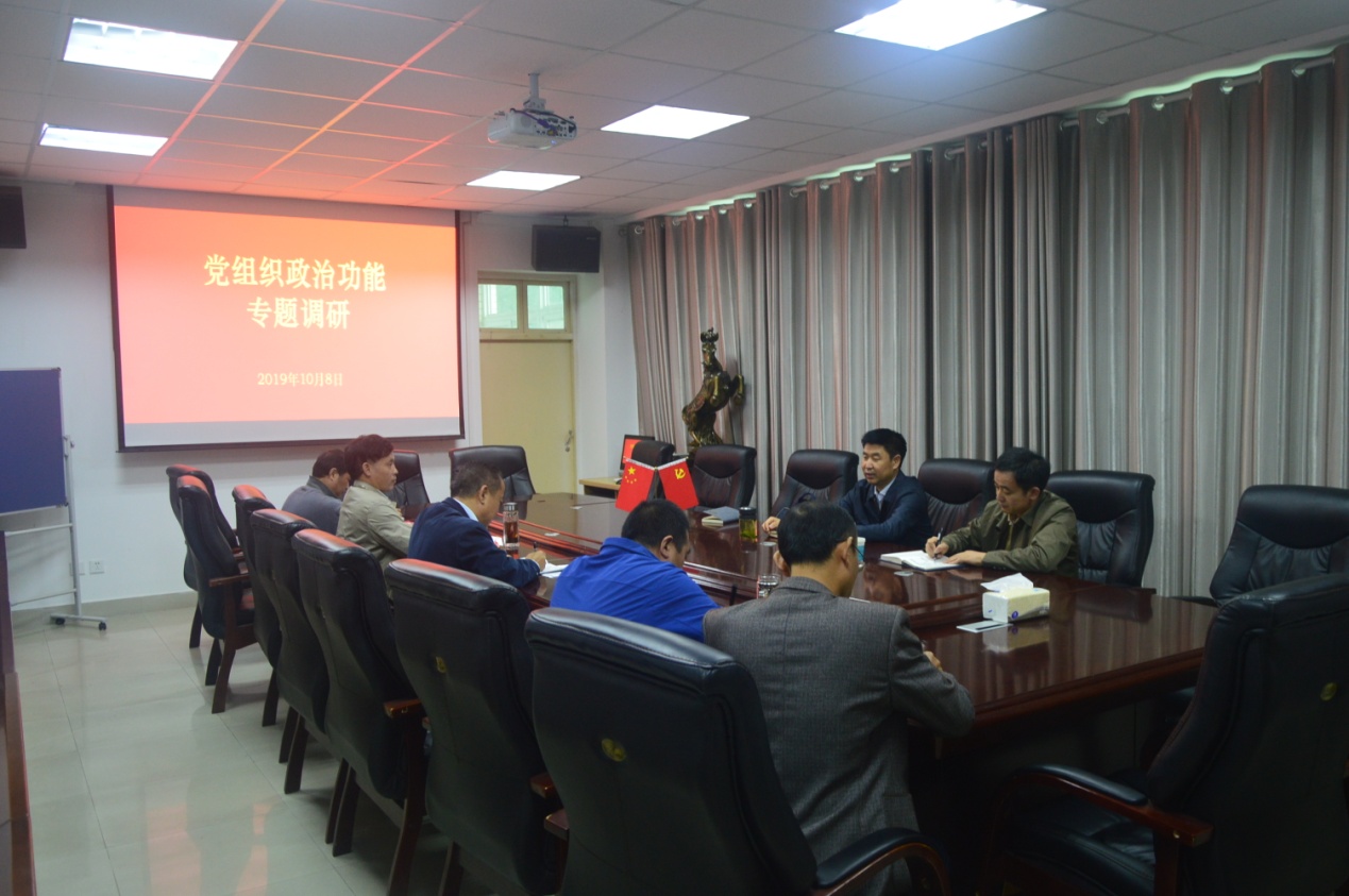 10月8日下午,校党委书记宋争辉带领党办副主任李周、党办文字秘书丁其科到3044am永利集团3044noc开展党组织政治功能发挥专题调研。3044am永利集团3044noc党委书记曹明贵、院长彭荣胜、副院长潘国兵、党委副书记张晓峰、党委委员胡宝珠参加了调研会。
