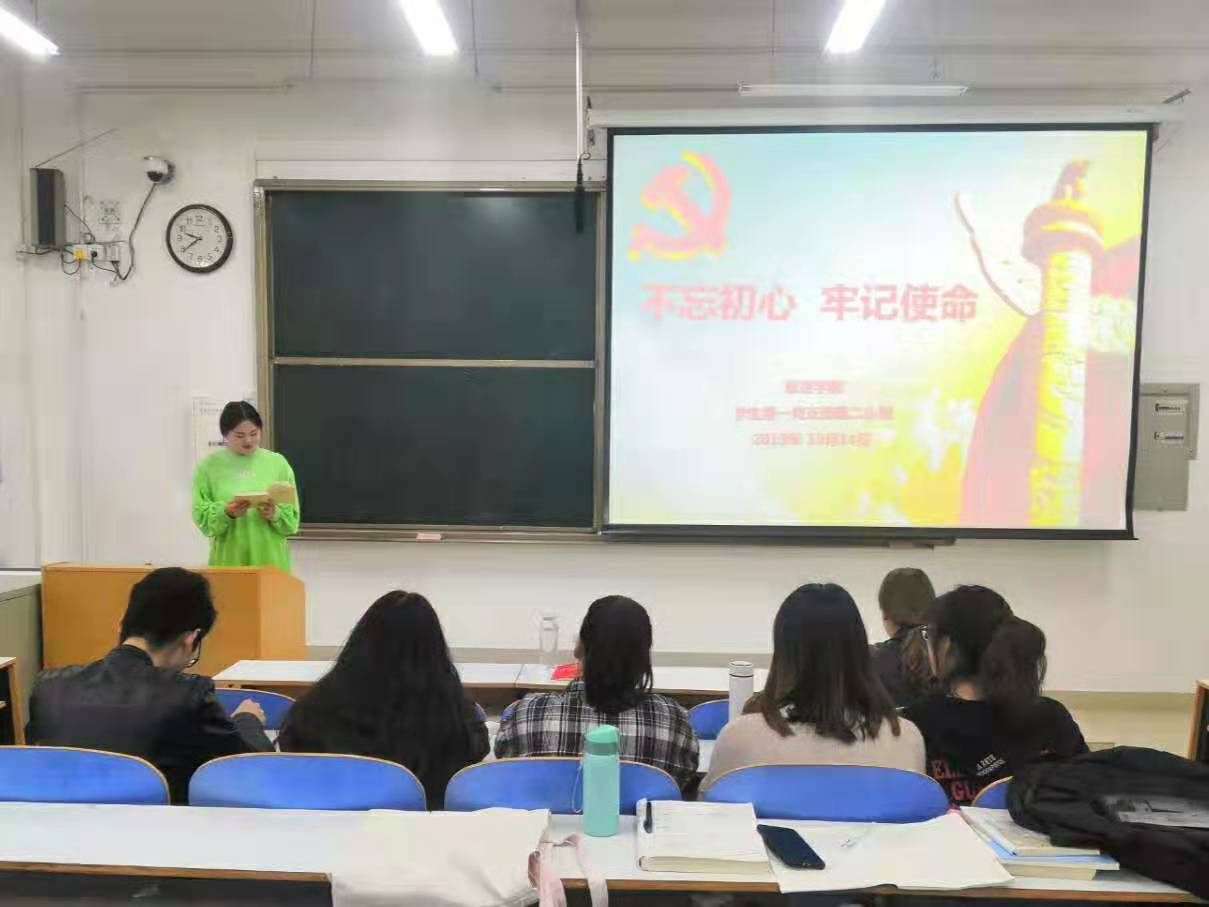 10月14日下午,3044am永利集团3044noc学生第一党支部第二党小组在经管楼201教室召开“不忘初心,牢记使命”主题教育活动,第二党小组全体党员参与,会议由党小组长李玉霞主持。